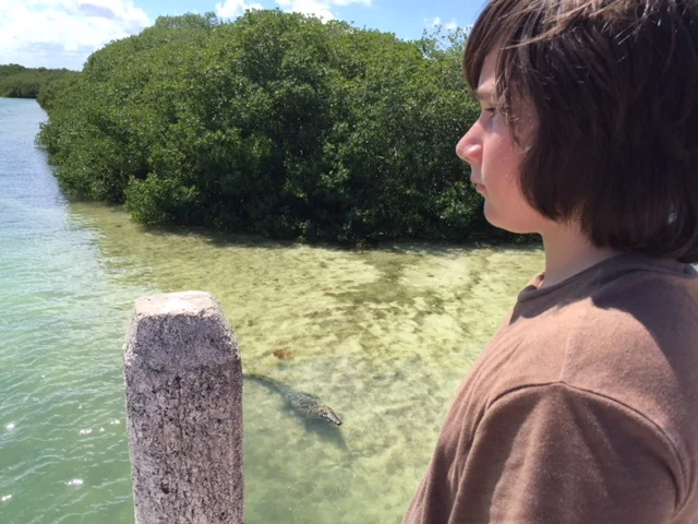 Doesn't that cocodrilo (to the right of the post) look hungry? Would you fool around like you were falling off the bridge and into the water?